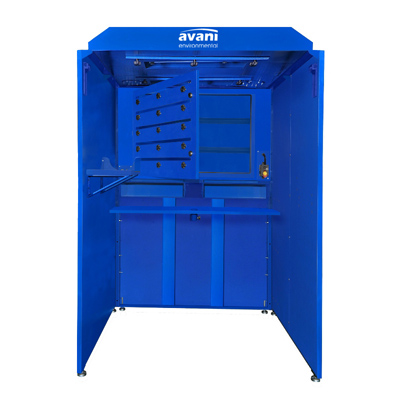 The WB-6000 series accommodates either a 3 hp collector for single booth or a 5 hp collector for double booth configurations.